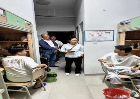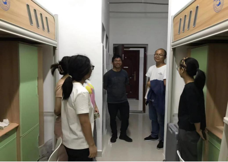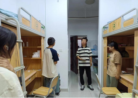 走访中,学院领导仔细询问学生生活状况,鼓励新生尽快融入班级、学院、学校大家庭,与室友融洽相处,尽快适应大学生活,勉励同学们要树立远大理想,抓住学习机会,不断利用学院资源充实、完善自我。期间,王燕妮书记特别关注新老混合寝室,嘱托同学们要互谅互让,友爱团结,展现物电学子良好的精神风貌;管延庆副书记强调同学入学后一定要注意人身安全和财产安全,避免上当受骗。