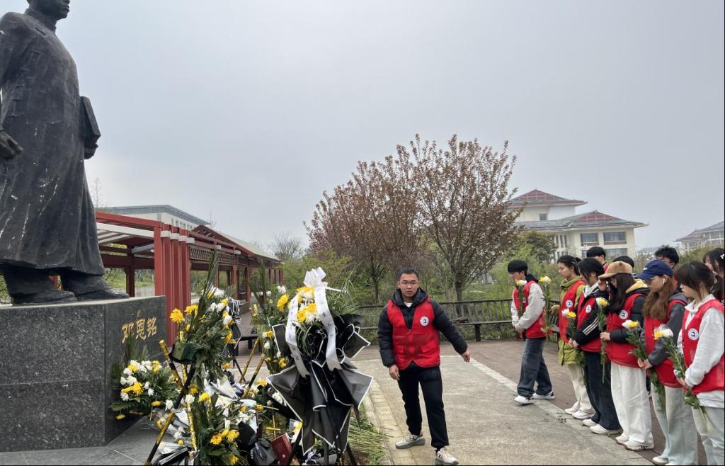鲜花献英烈,寄托哀思情。4月4日上午,志愿者们手持白菊,整齐列队于学校南校区邓恩铭烈士雕塑前,在庄严肃穆的氛围中,志愿者们列队献花、鞠躬默哀,表达对革命先烈的无限敬仰和深切怀念。每一束鲜花都承载着学生们对英烈的缅怀之情,也寄托着他们传承红色基因、弘扬爱国主义精神的坚定信念。
