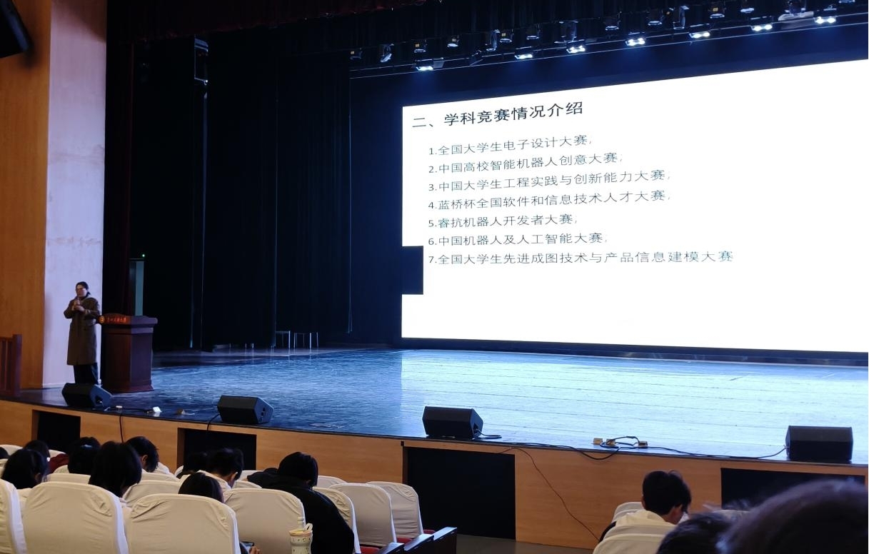 开场表演结束后,现场介绍了与会领导嘉宾,院长李伟民发表开幕词,正式拉开本次“双月”活动的序幕。随后,党委副书记管延庆宣读表彰决议,为在第十八届“高教杯”全国大学生先进成图技术与产品信息建模创新大赛团队、中国高校智能机器人创意大赛团队等多项学科竞赛中取得优异成绩的同学颁奖。