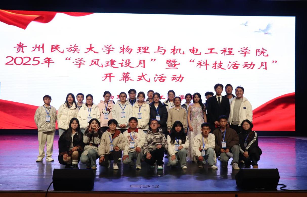 开幕式结束后,团委负责人赵洪老师组织全体工作人员合影留念,大家脸上洋溢着收获的喜悦。帷幕虽落,征程方启。本次开幕式的顺利举办,为全体物电学子营造了崇尚真知、追求卓越的浓厚氛围。接下来,同学们将以更饱满的热情投身学术探索与科技创新,在求索中锤炼本领,在实干中追逐梦想,共同书写学院育人成才与创新发展的崭新篇章!