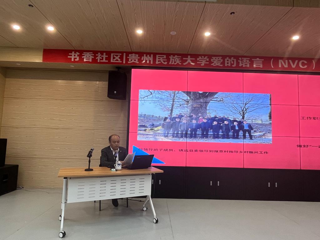 高鑫副处长从“坚持党建引领,筑牢发展根基”“心系事业发展,彰显责任担当”“全力纾解民困,真情温暖民心”“加强民族团结,树立文明新风”“开辟全新赛道,打造报京样板”五个方面,分享了自己在镇远县报京乡两年的驻村工作经验,从我校党员干部接续帮扶报京乡、金堡镇的一个个鲜活的事例中,深刻理解我国脱贫攻坚战取得全面胜利的重大意义,深刻领会党的二十大对“全面推进乡村振兴”作出的重大决策部署。他鼓励广大教师党员积极开展驻村工作,使广大毕业生能踊跃当“村干部”、到乡村当志愿者,把个人的命运同祖国的命运联系在一起,投身到全面推进乡村振兴的伟大事业中。