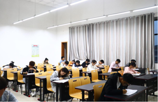 此次竞赛开设四个考场,采用笔试的方式,共有考生108,考试时间共两小时。内容涉及中国共产主义青年团团史、团的基础知识。为增强参赛者的爱国、爱党、爱团意识,竞赛以全体起立齐唱国歌和团歌的方式开始,现场歌声悠扬,满腔热情。考生落笔有神,全身投入,在监考组和参赛者的完美配合下,竞赛顺利结束。
