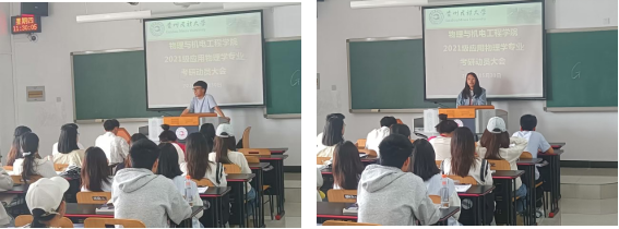 接着,物理系主任王声权老师大学物理部部长周朝彪老师就同学们就业问题及本科毕业走向方面进行深入分享讲解,帮助同学们更深刻理解本专业发展前景和自己的未来规划。同时,强调了考研的重要意义,激发了学生们对考研的强烈欲望。