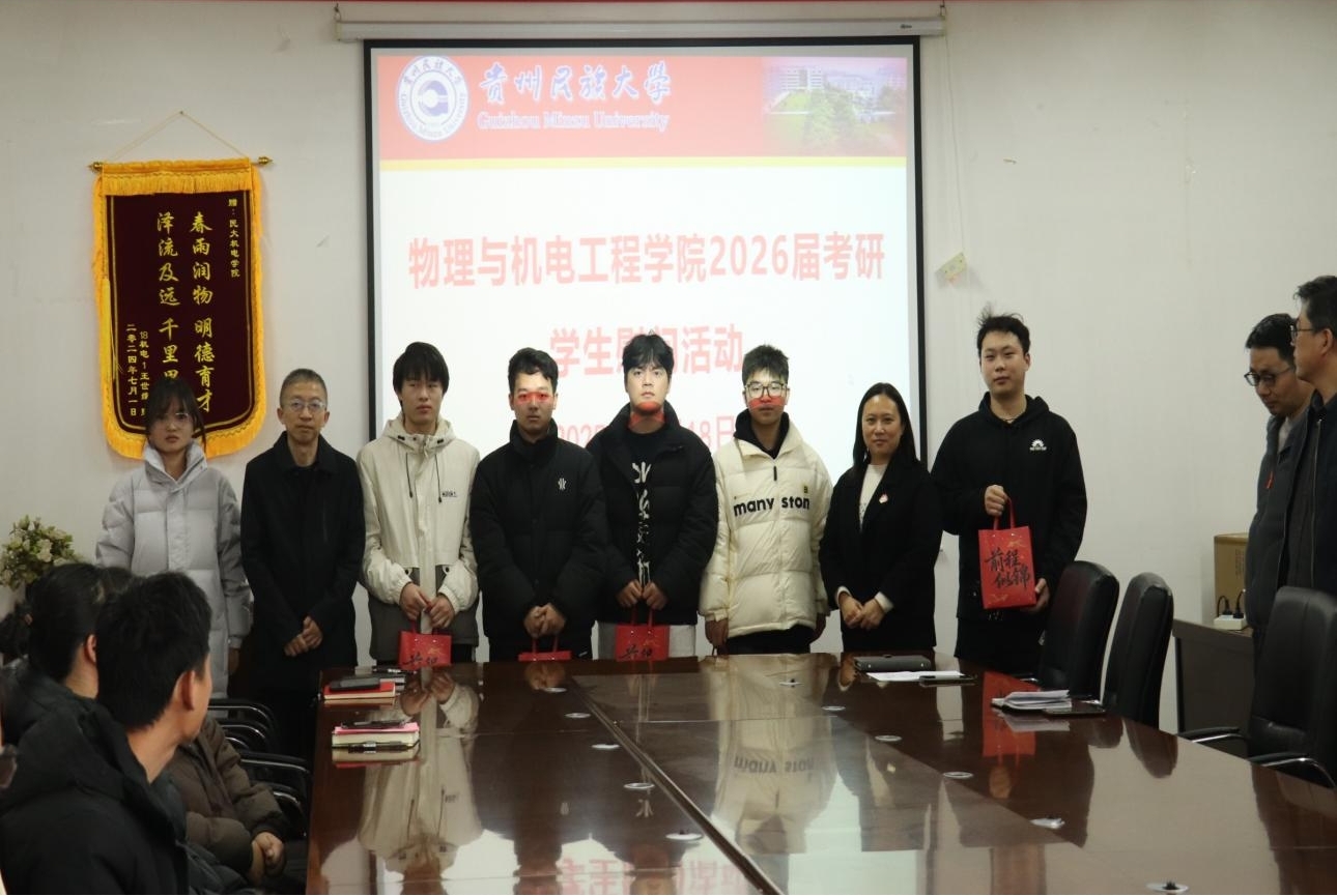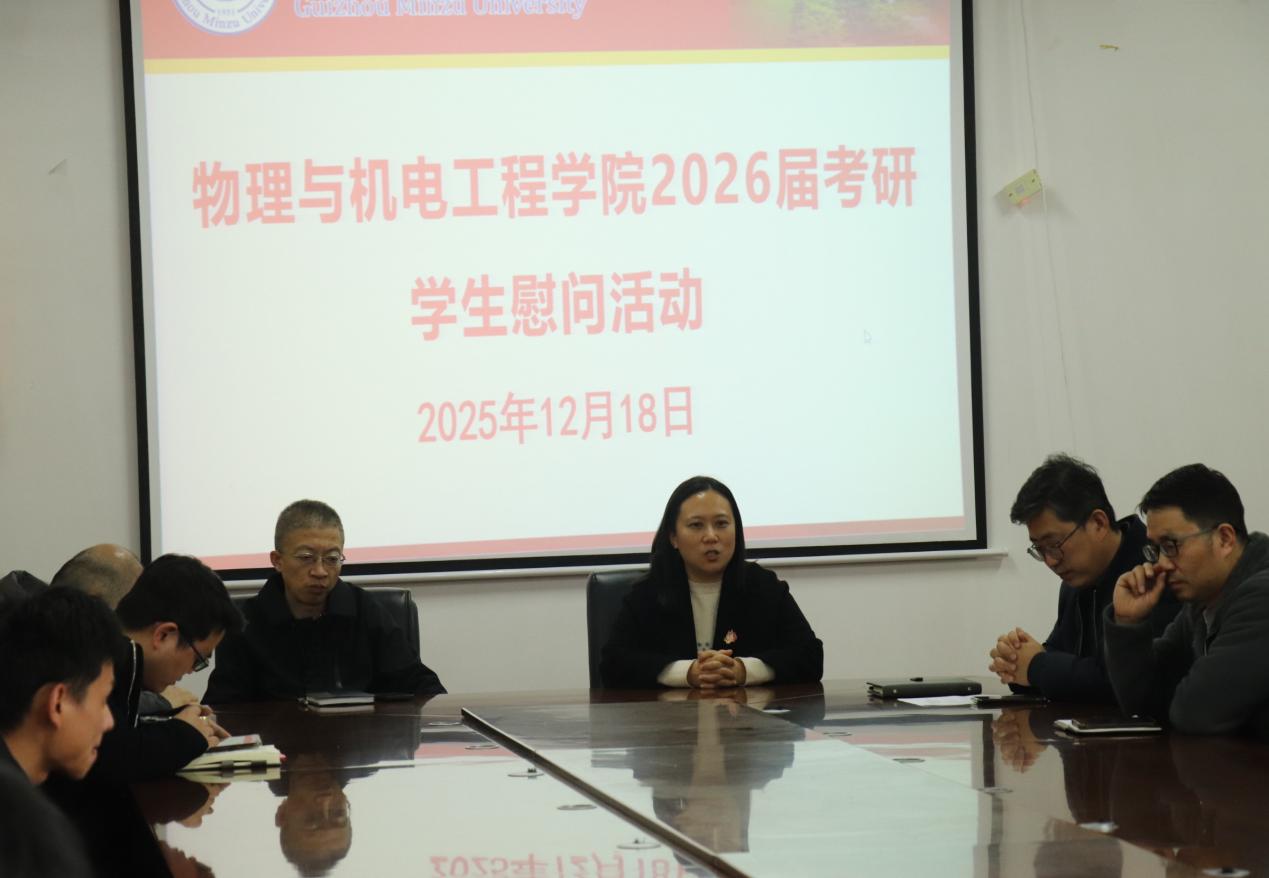 于2025年12月18日中午13:00,在学院楼418会议室开展2026届考研学生慰问活动。学院党委书记王燕妮,院长李伟民,党委副书记管延庆,副院长王声权、杨盛毅、周朝彪出席,学院学生工作辅导员及全体2026届考研学生参加本次活动,活动由管延庆副书记主持。